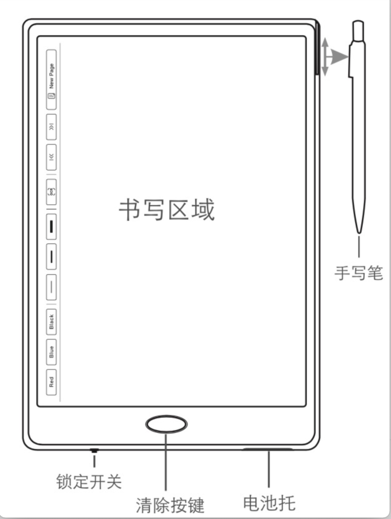 ①如需开启清除功能,请将锁定开关拨到打开状态,然后可使用清除键清除屏幕内容。