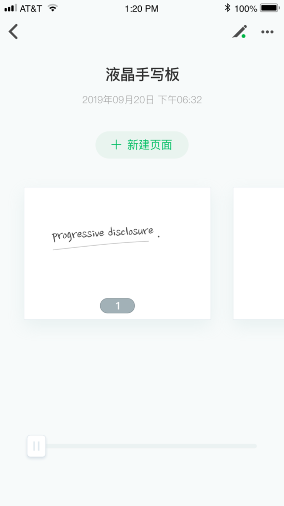 ②在液晶手写板右上角点击“New Page”新建页面,App实时同步新建书写内容页面。