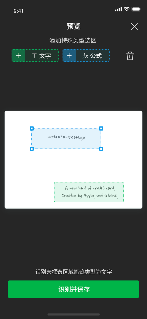 ②在识别预览页面可进行“T文字框选”和“fx公式框选”。